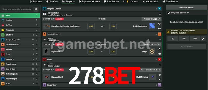 O 278bet oferece uma grande seleção de opções de apostas em e-sports com probabilidades competitivas